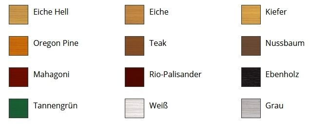 Lasuren lassen den Untergrund durchscheinen. Deshalb ist die Wirkung der einzelnen Farbtöne auf den verschiedenen Holzarten unterschiedlich. Probeanstrich anlegen.