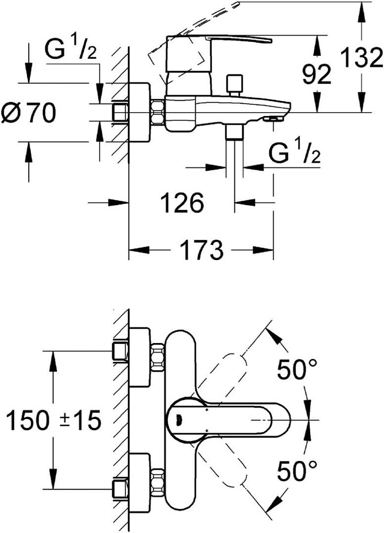 - Einhand-Wannenbatterie passend für alle Brauseschläuche